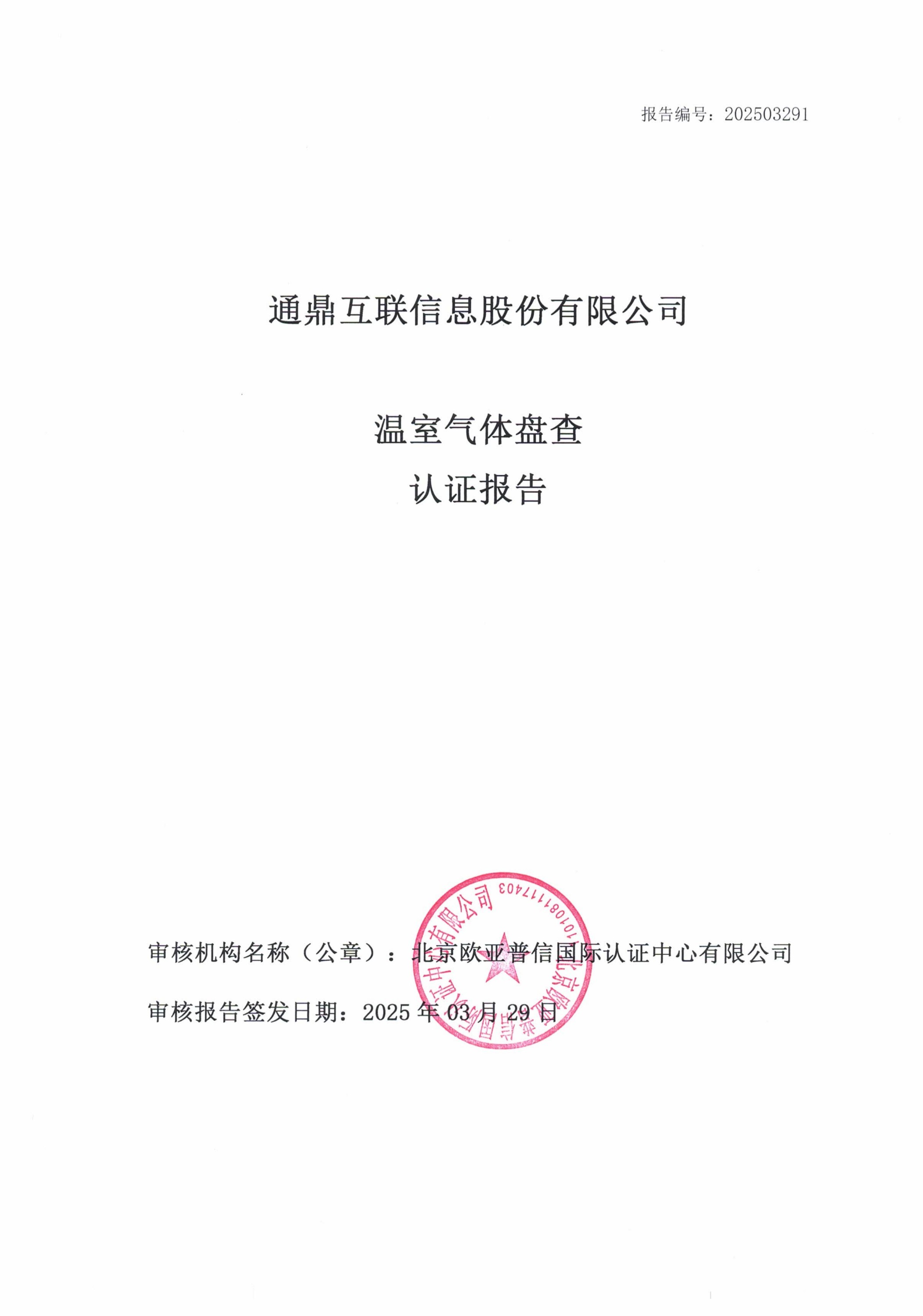 通鼎互联信息股份有限公司温室气体盘查认证报告